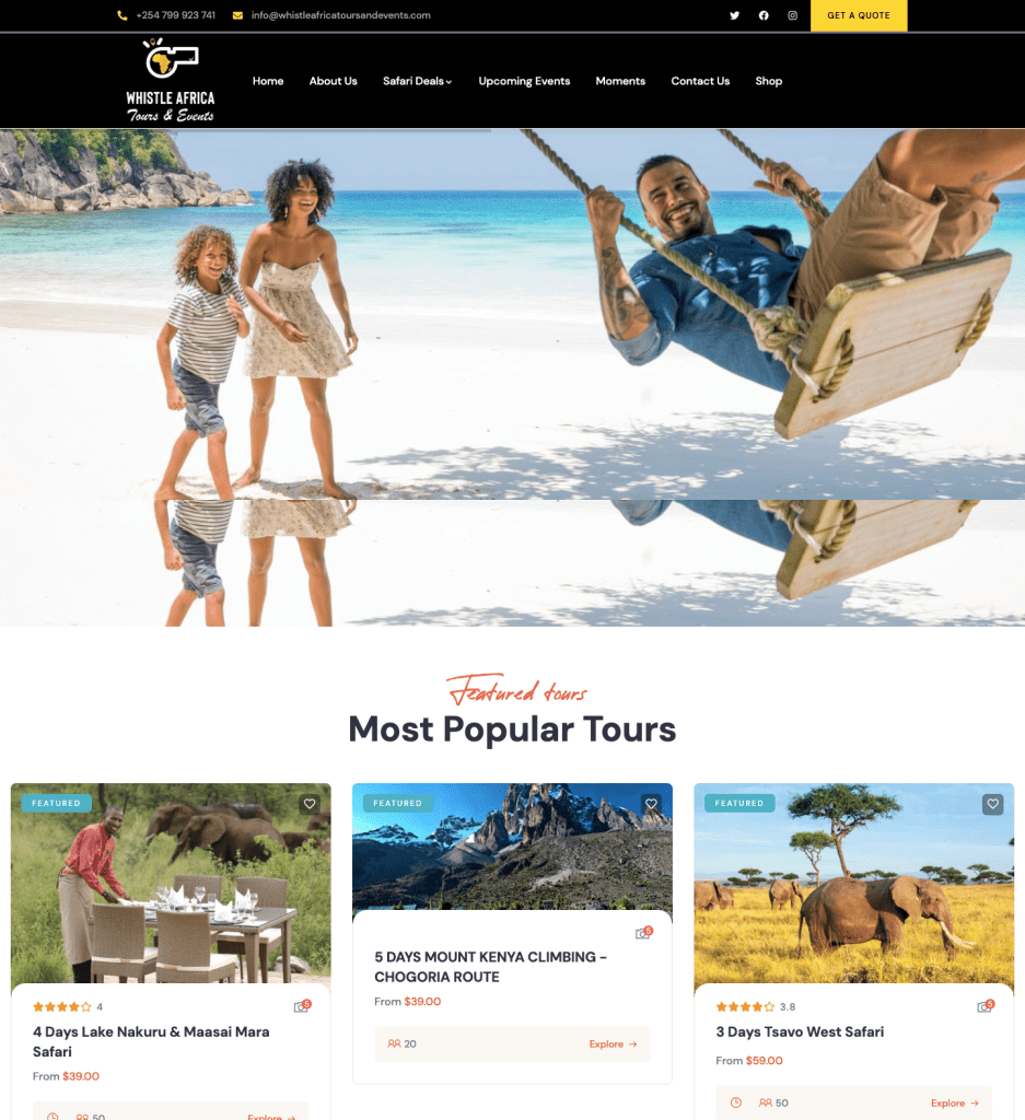 We are a well-established Kenyan-based destination management company, managed by a competent team of professionals with collective industry experience in providing tours and events services across East African destinations including Kenya, Tanzania, Uganda, Rwanda, and Zanzibar. Our specialty is the ability to design unique and affordable tours and events packages to fit every type of guest, from budget to luxury providing an opportunity to combine city, bush and beach adventures within East Africa’s spectacular scenery.